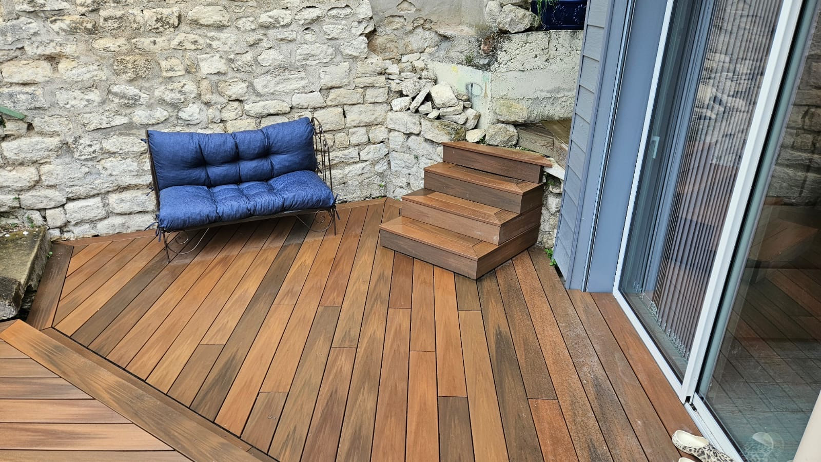 Ma terrasse de 21m2 à lames composites creuses "grand public" se détériorait à vue d'œil dans l'annee même de sa pose (fêlure dans la longueur) grrrrrr ! Jacquetelle Terrasses & Jardins m'a...Oblik Kilbo -