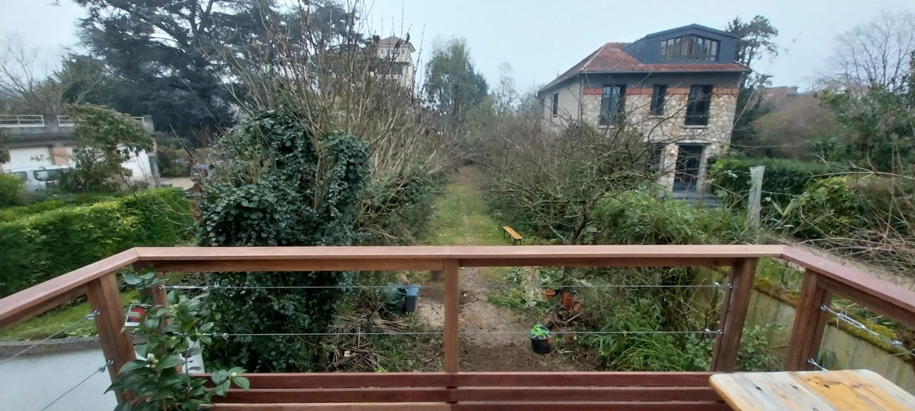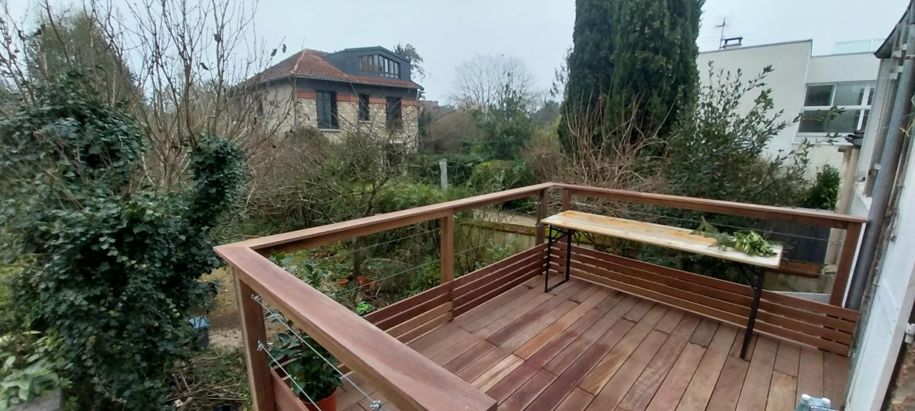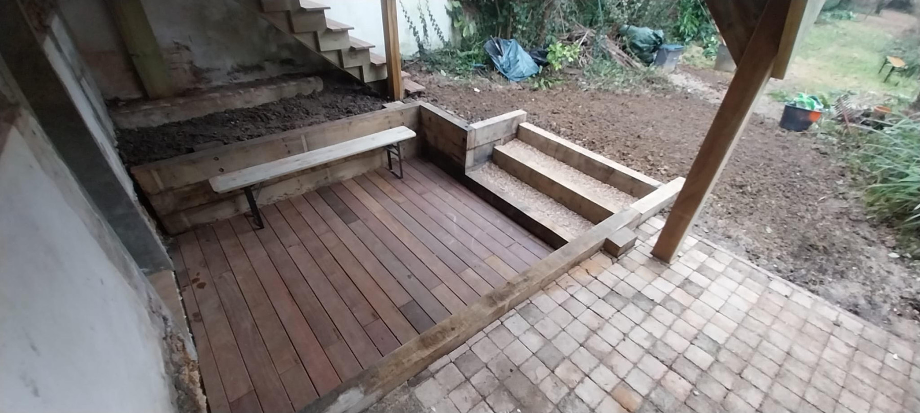 Terrasse en Cumaru, retenue de terre et escalier en chêne à Saint Cloud (92)